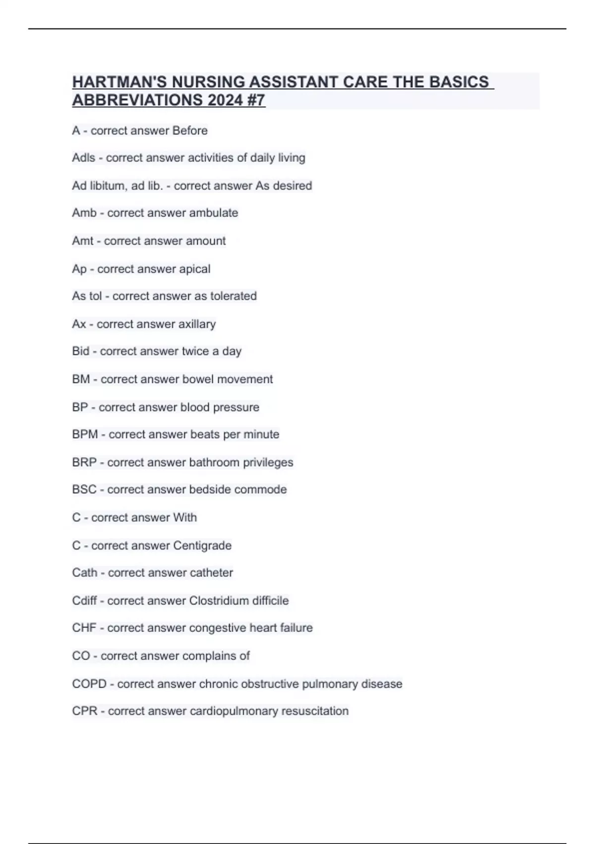 HARTMAN-S NURSING ASSISTANT CARE THE BASICS ABBREVIATIONS 2024 -7