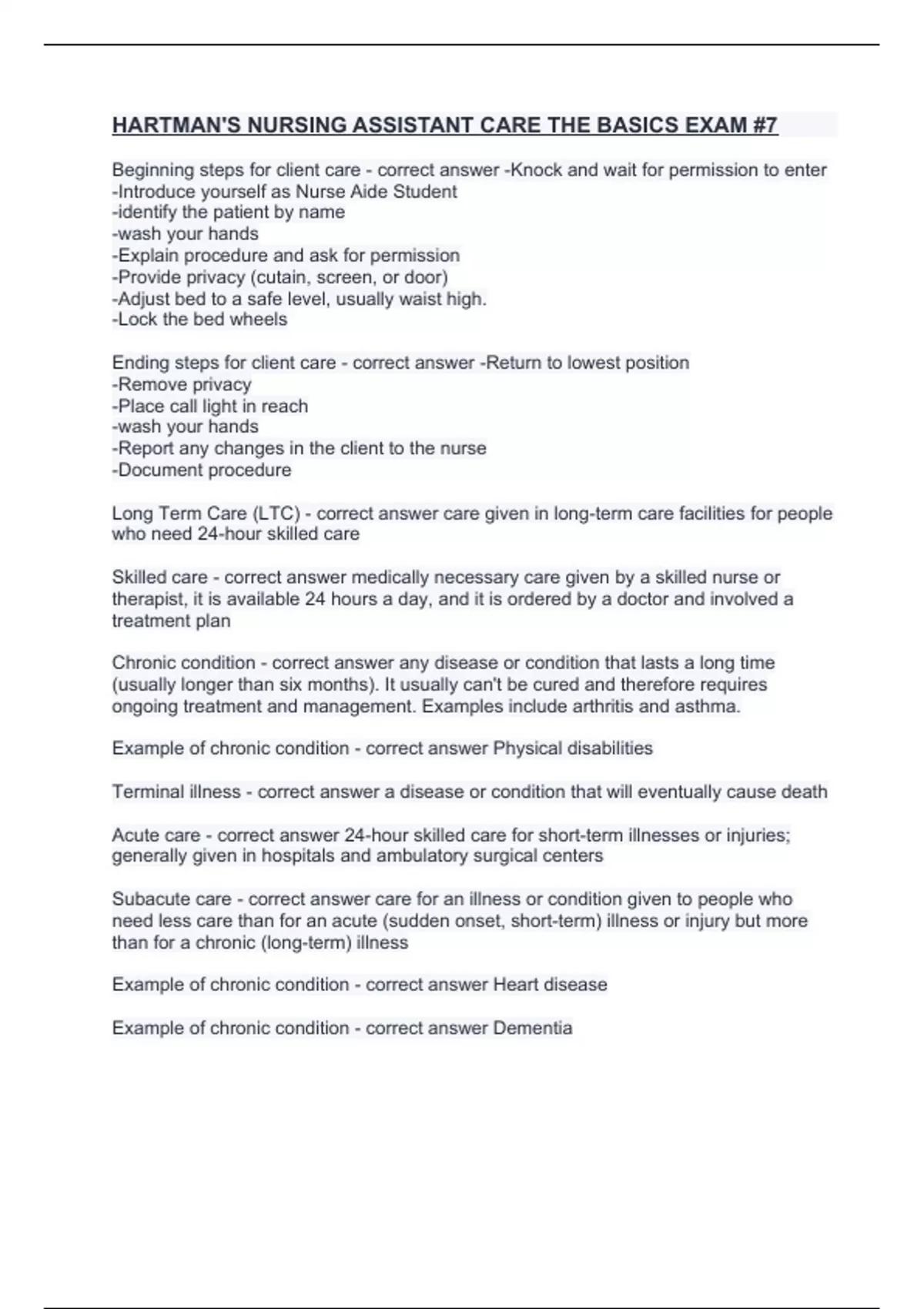 Terminal illness - correct answer a disease or condition that will eventually cause death