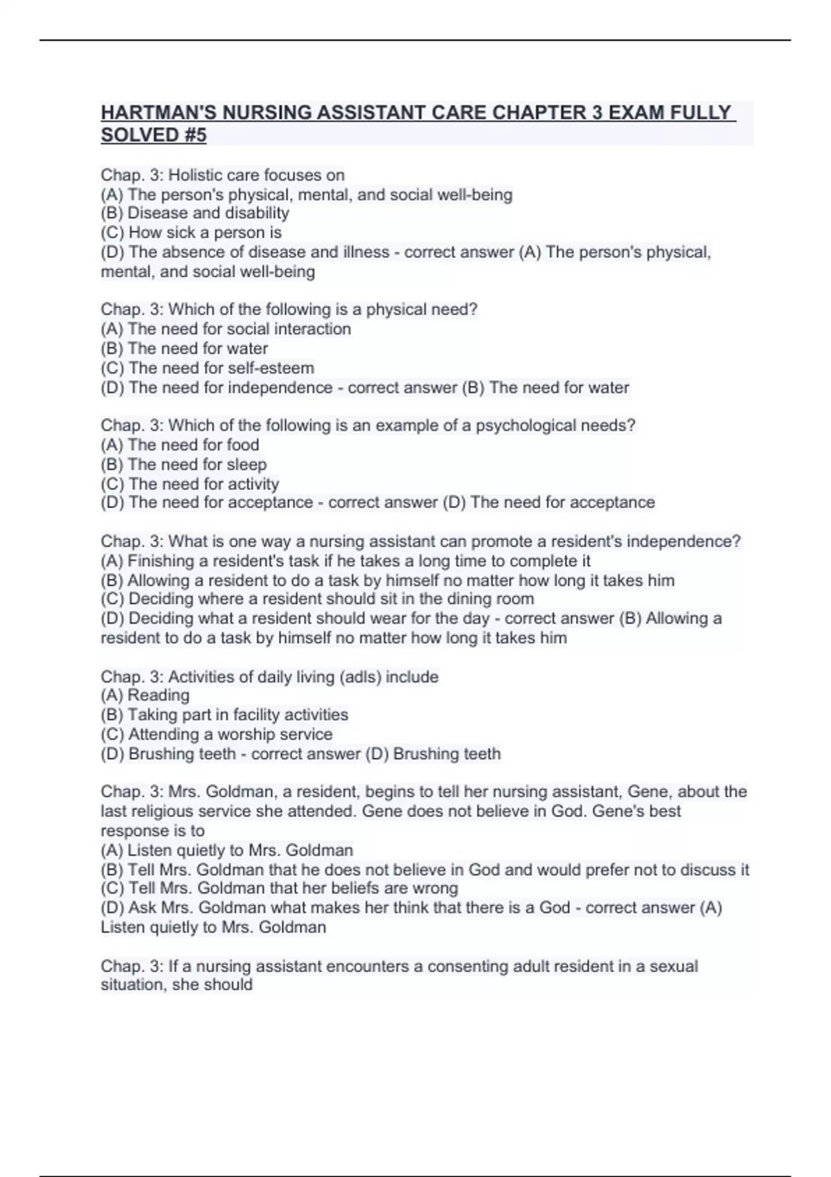 HARTMAN-S NURSING ASSISTANT CARE CHAPTER 3 EXAM FULLY SOLVED -5