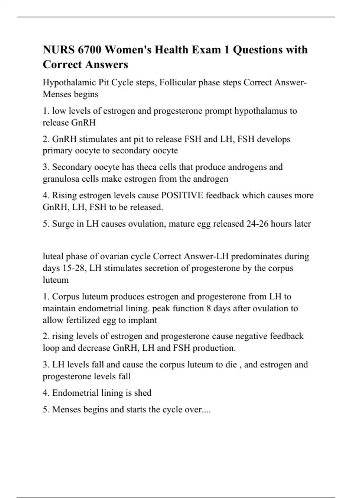 ,Ovarian cycle phases Correct Answer-follicular phase, ovulation, luteal