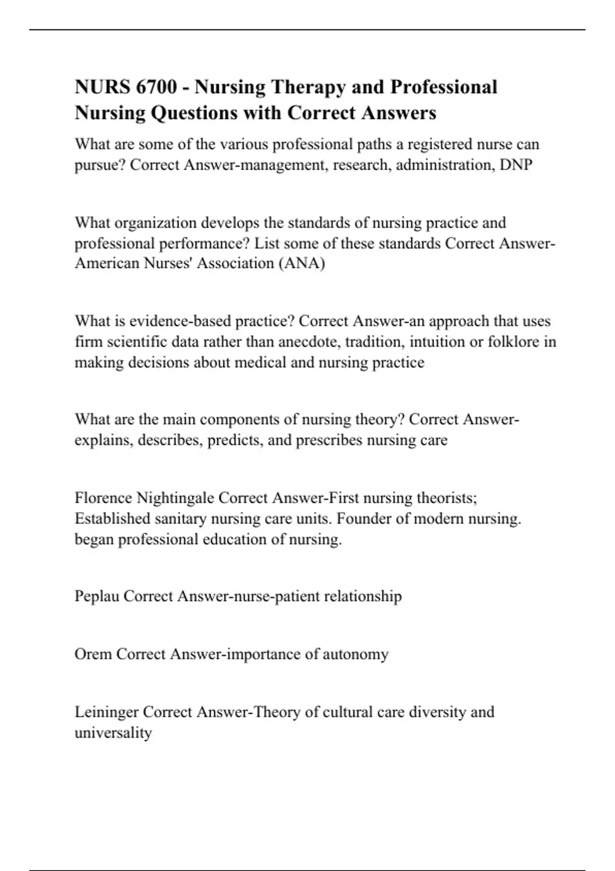 Florence Nightingale Correct Answer-First nursing theorists;