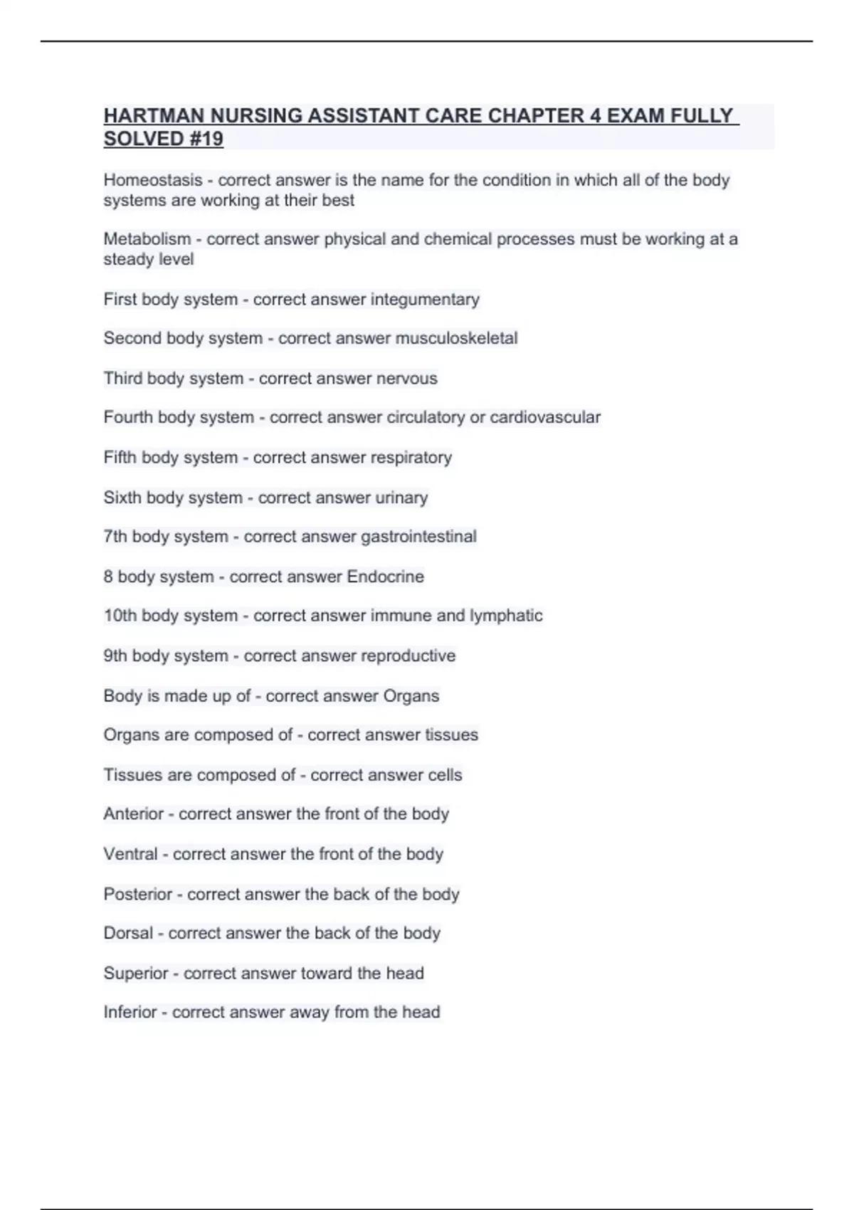 Second body system - correct answer musculoskeletal