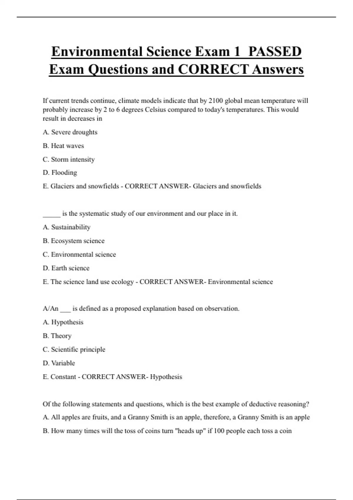 Exam Questions and CORRECT Answers
