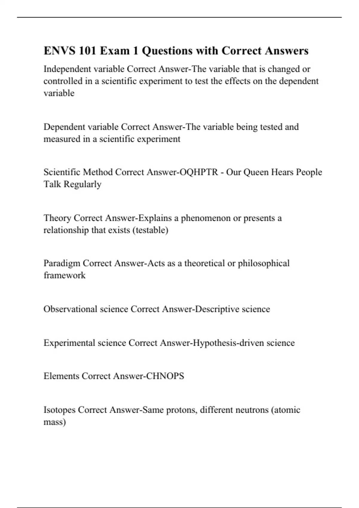 Scientific Method Correct Answer-OQHPTR - Our Queen Hears People