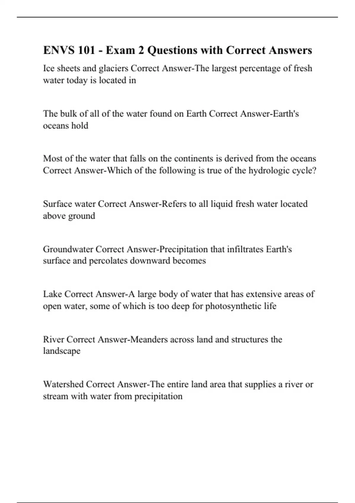Surface water Correct Answer-Refers to all liquid fresh water located
