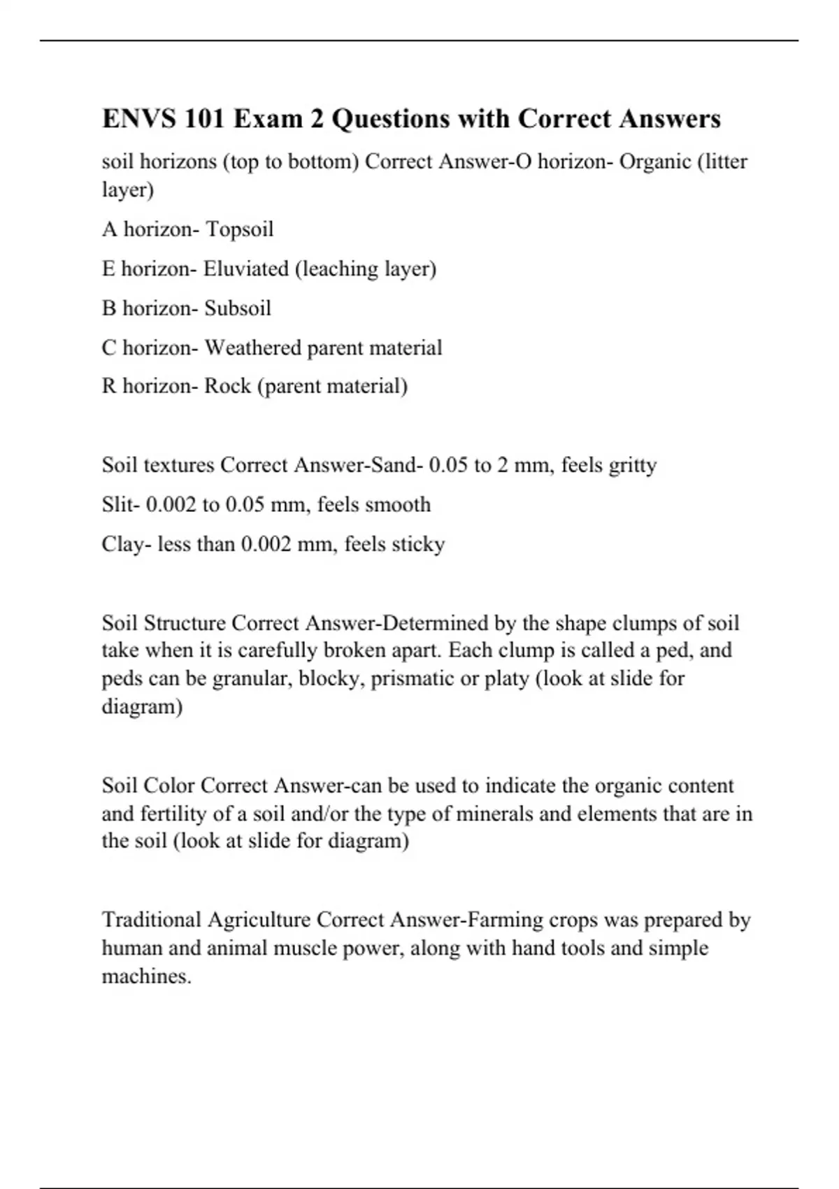 soil horizons (top to bottom) Correct Answer-O horizon- Organic (litter