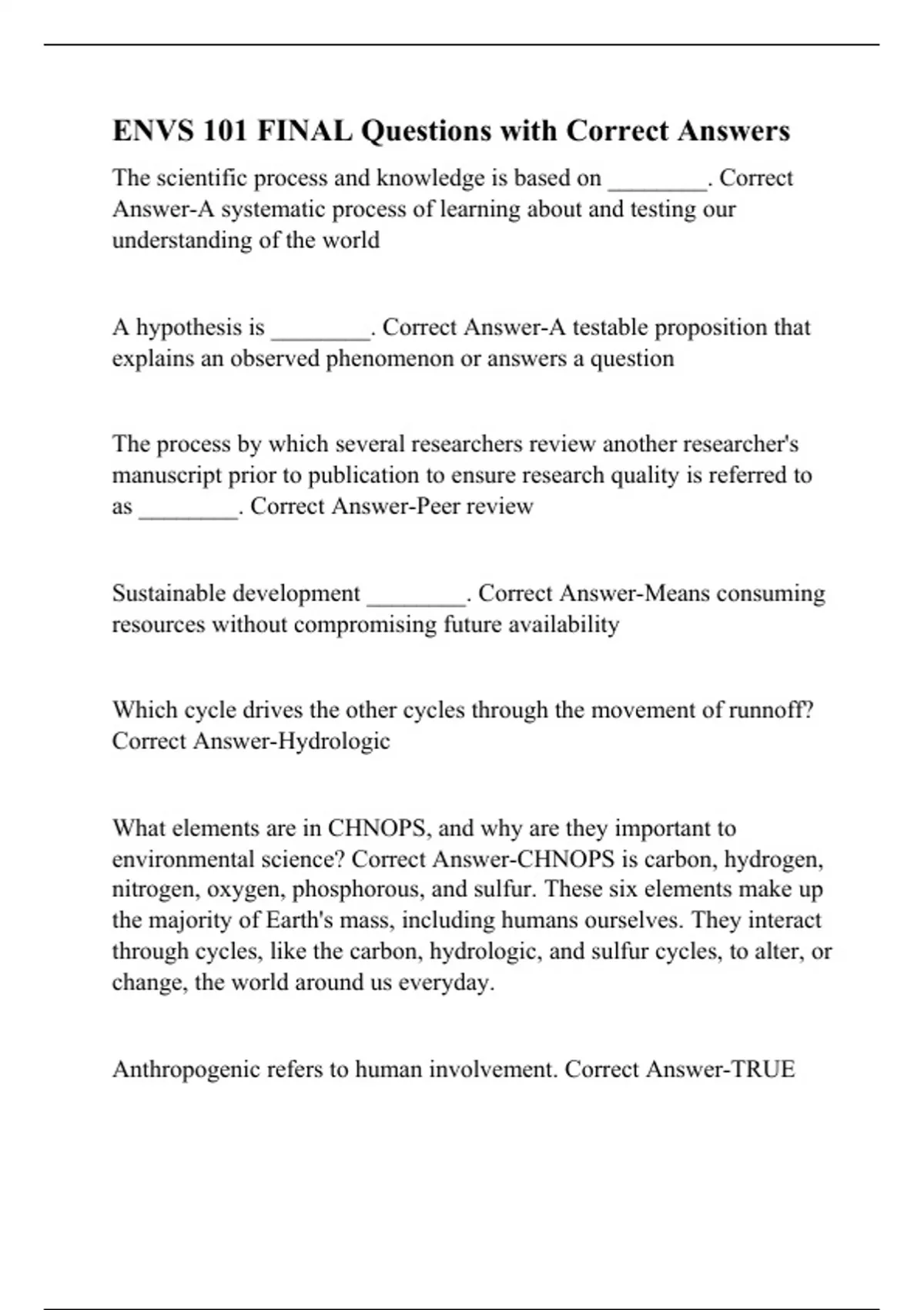environmental science? Correct Answer-CHNOPS is carbon, hydrogen,
