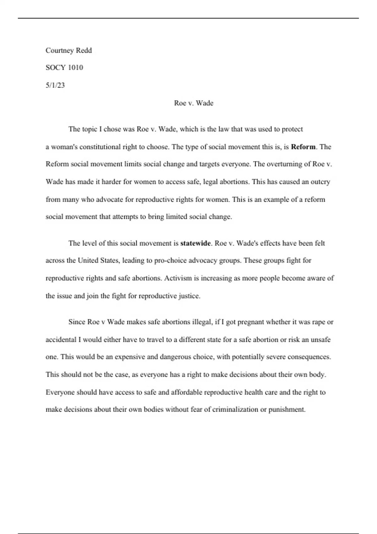 Reform social movement limits social change and targets everyone. The overturning of Roe v.