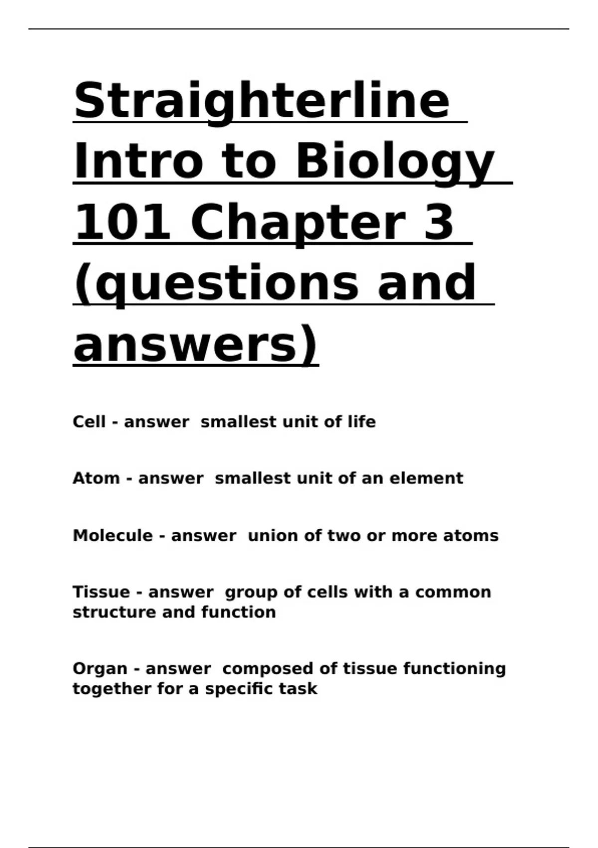 Organ - answer composed of tissue functioning