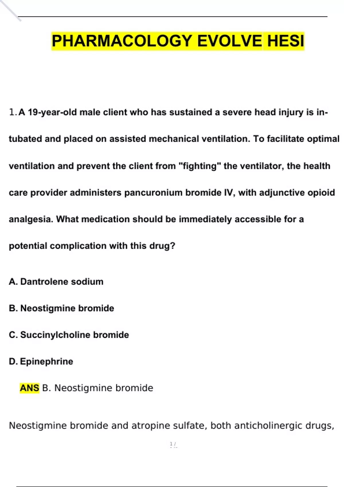 ventilation and prevent the client from "fighting" the ventilator, the health