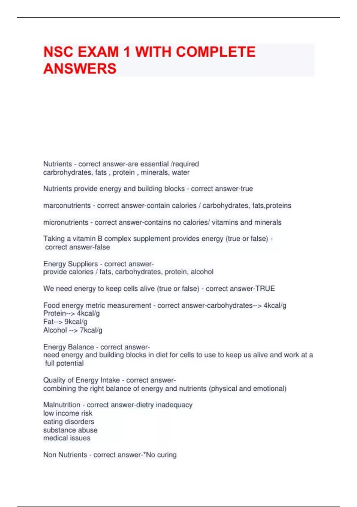 NSC EXAM 1 WITH COMPLETE ANSWERS