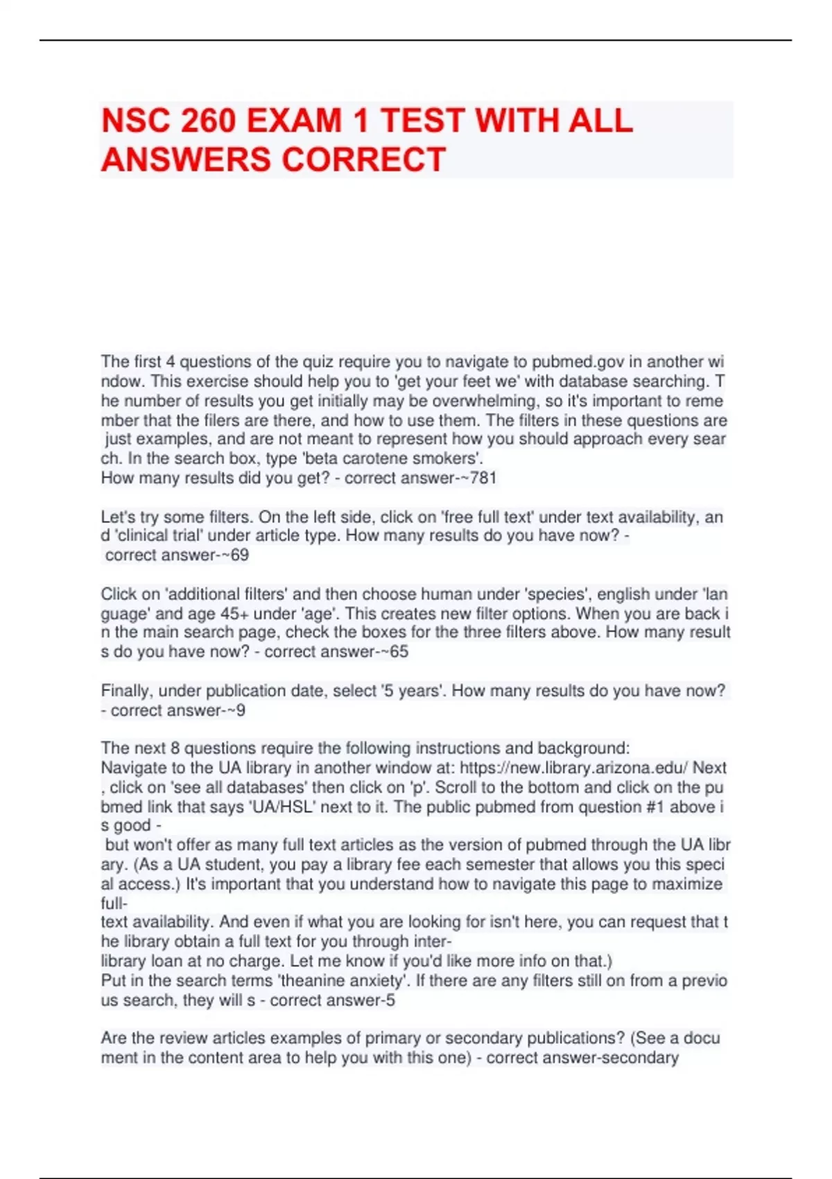 NSC 260 EXAM 1 TEST WITH ALL ANSWERS CORRECT