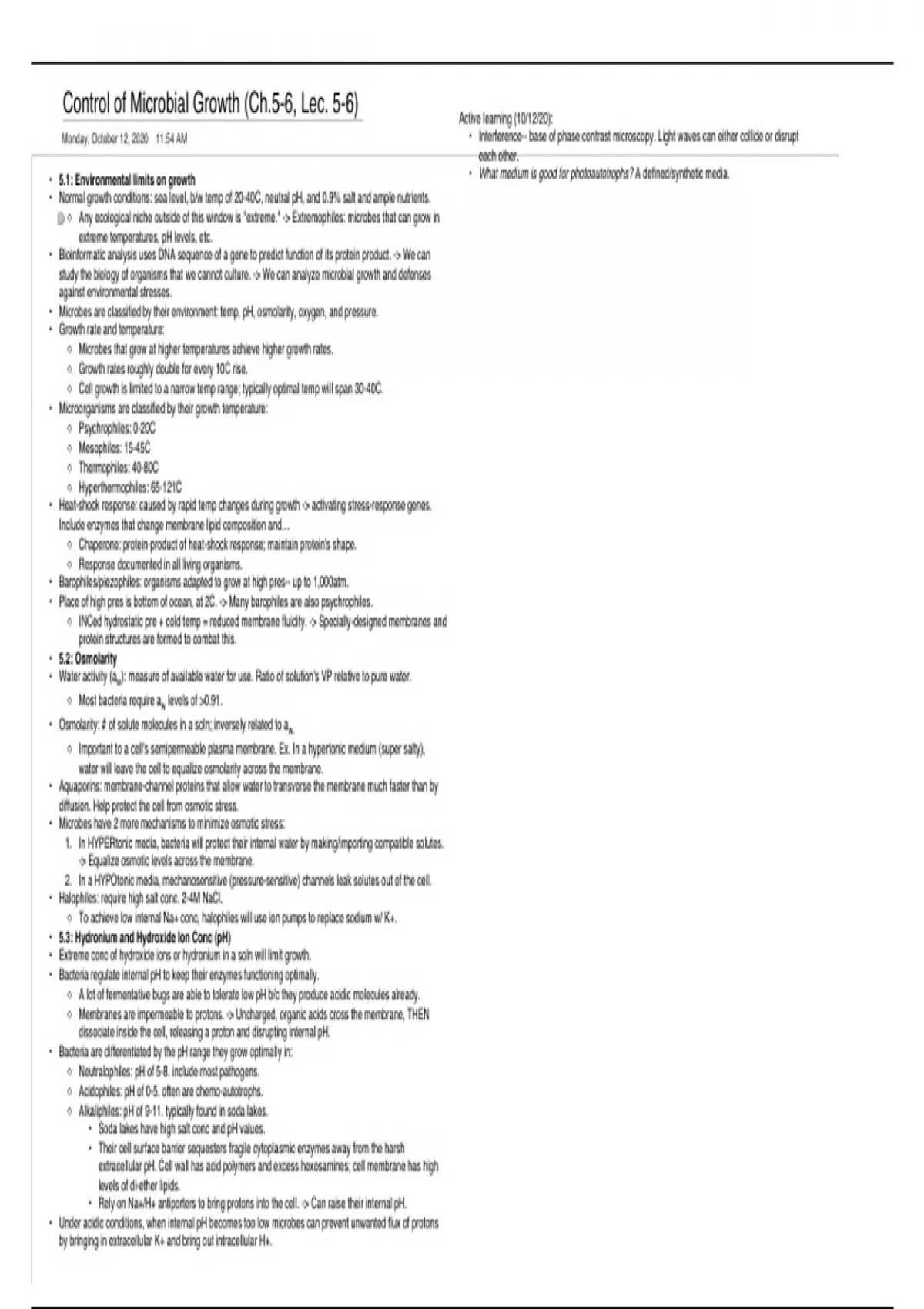 • Microbes are classified by their environment: temp, pH, osmolarity, oxygen, and pressure.