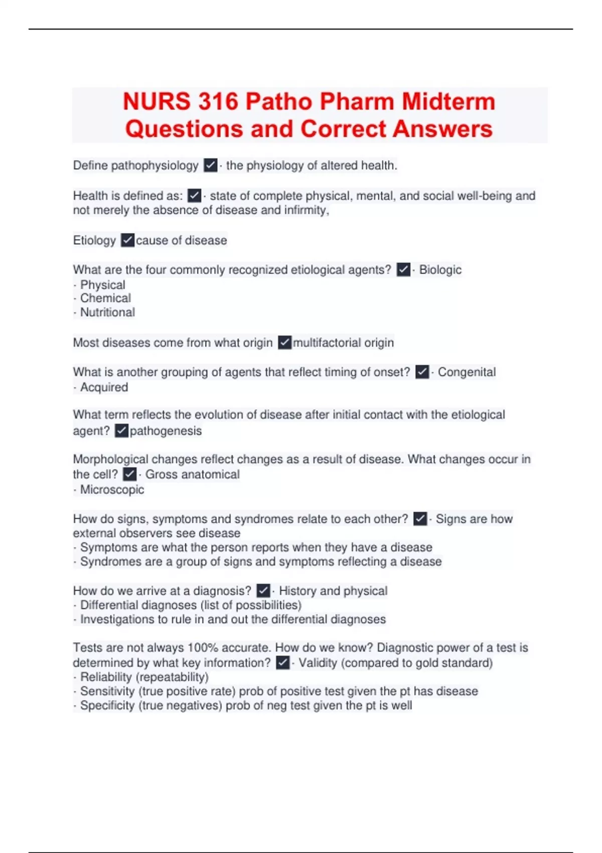 NURS 316 Patho Pharm Midterm Questions and Correct Answers