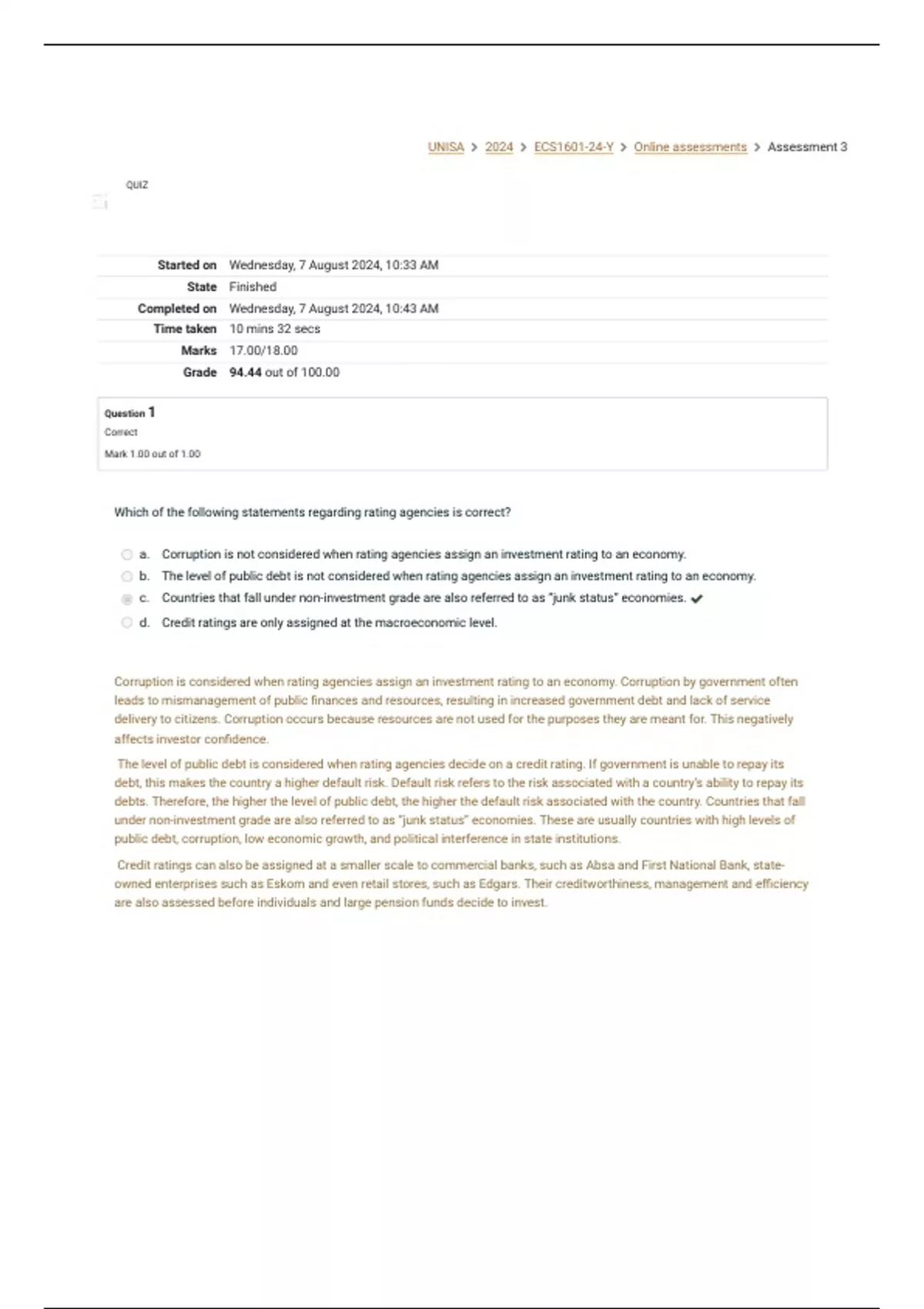 UNISA 2024 ECS1601-24-Y Online assessments Assessment 3