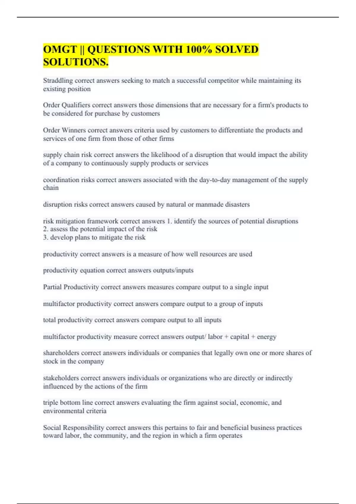 operations and supply chain management correct answers the design, operation, and