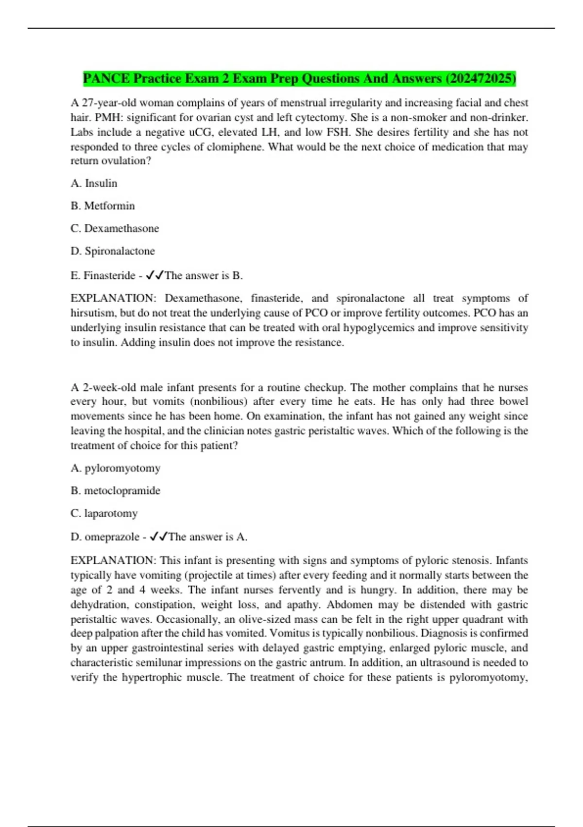 PANCE Practice Exam 2 Exam Prep Questions And Answers ()