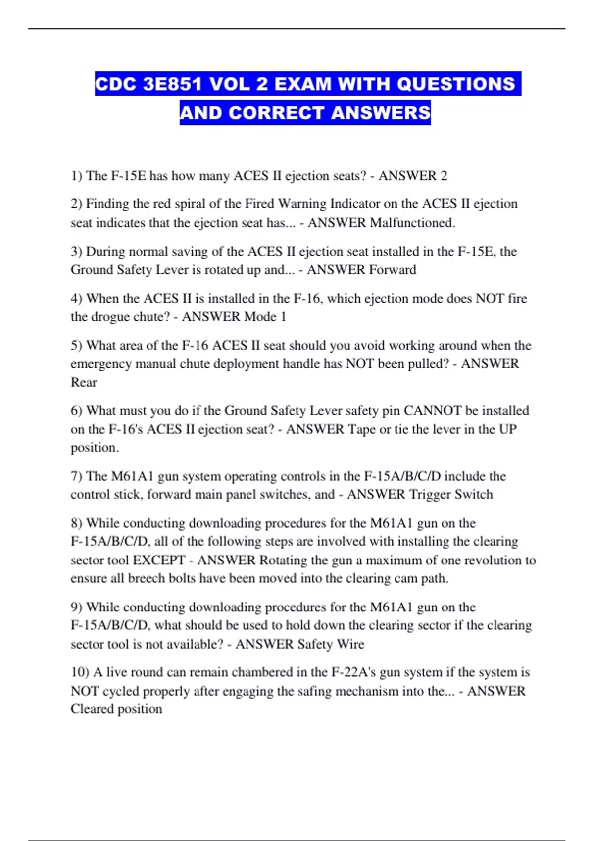 CDC 3E851 VOL 2 EXAM WITH QUESTIONS