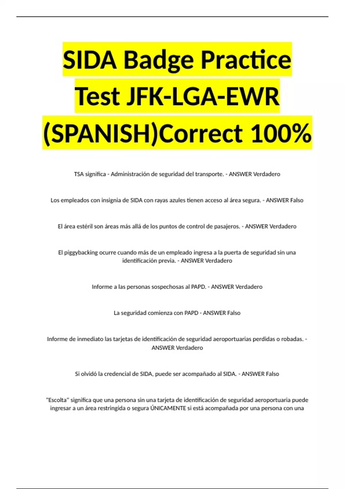 SIDA Badge Practice Test JFK-LGA-EWR (SPANISH)Correct 100%