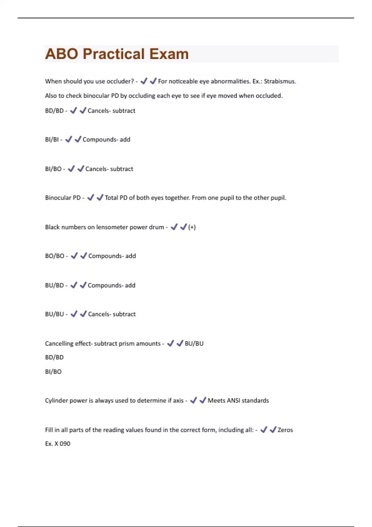 Also to check binocular PD by occluding each eye to see if eye moved when occluded.