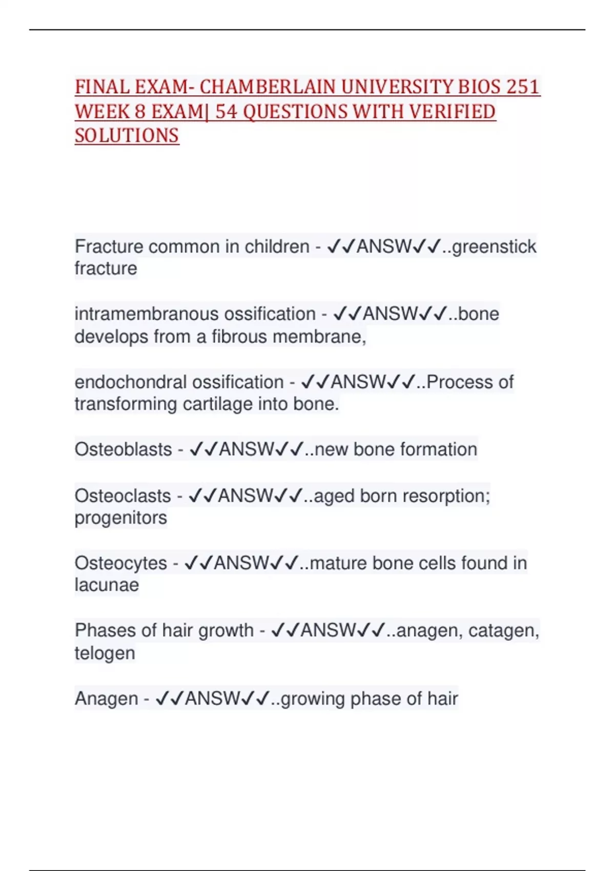 FINAL EXAM- CHAMBERLAIN UNIVERSITY BIOS 251