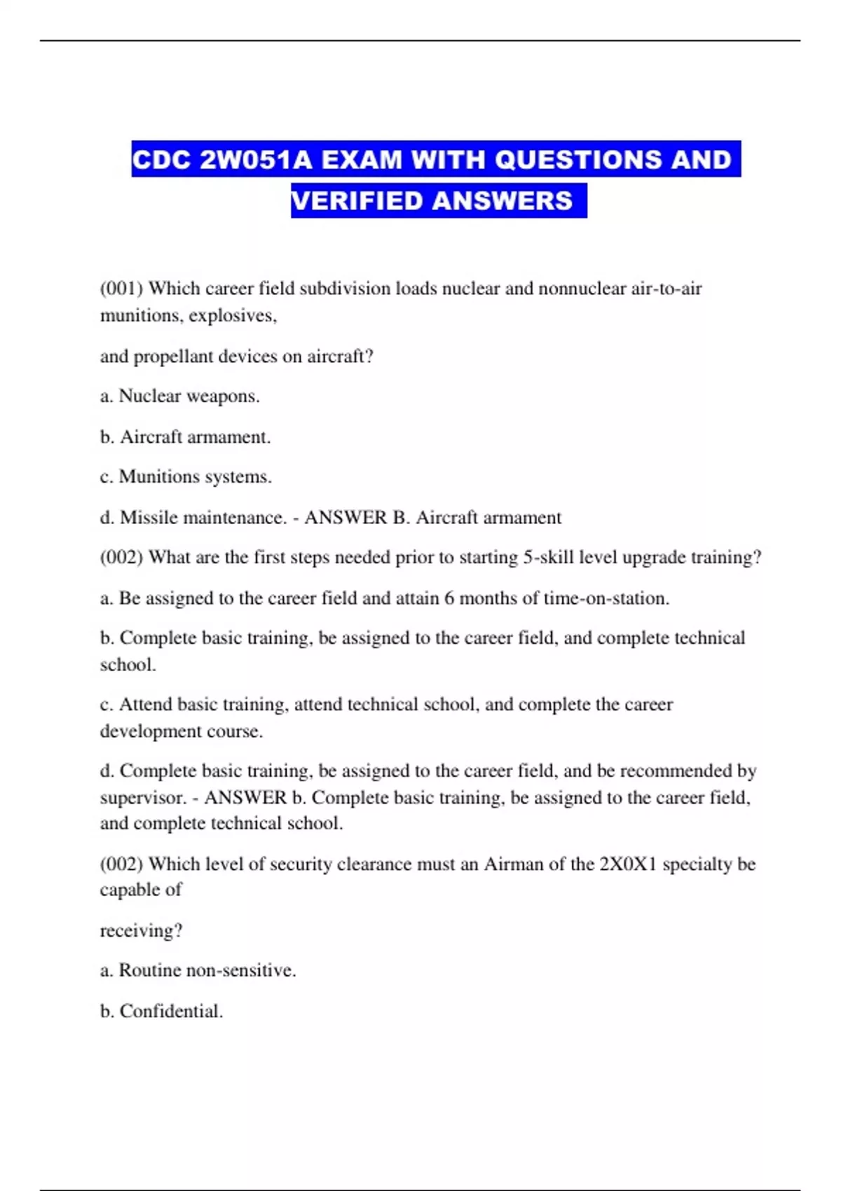 CDC 2W051A EXAM WITH QUESTIONS AND