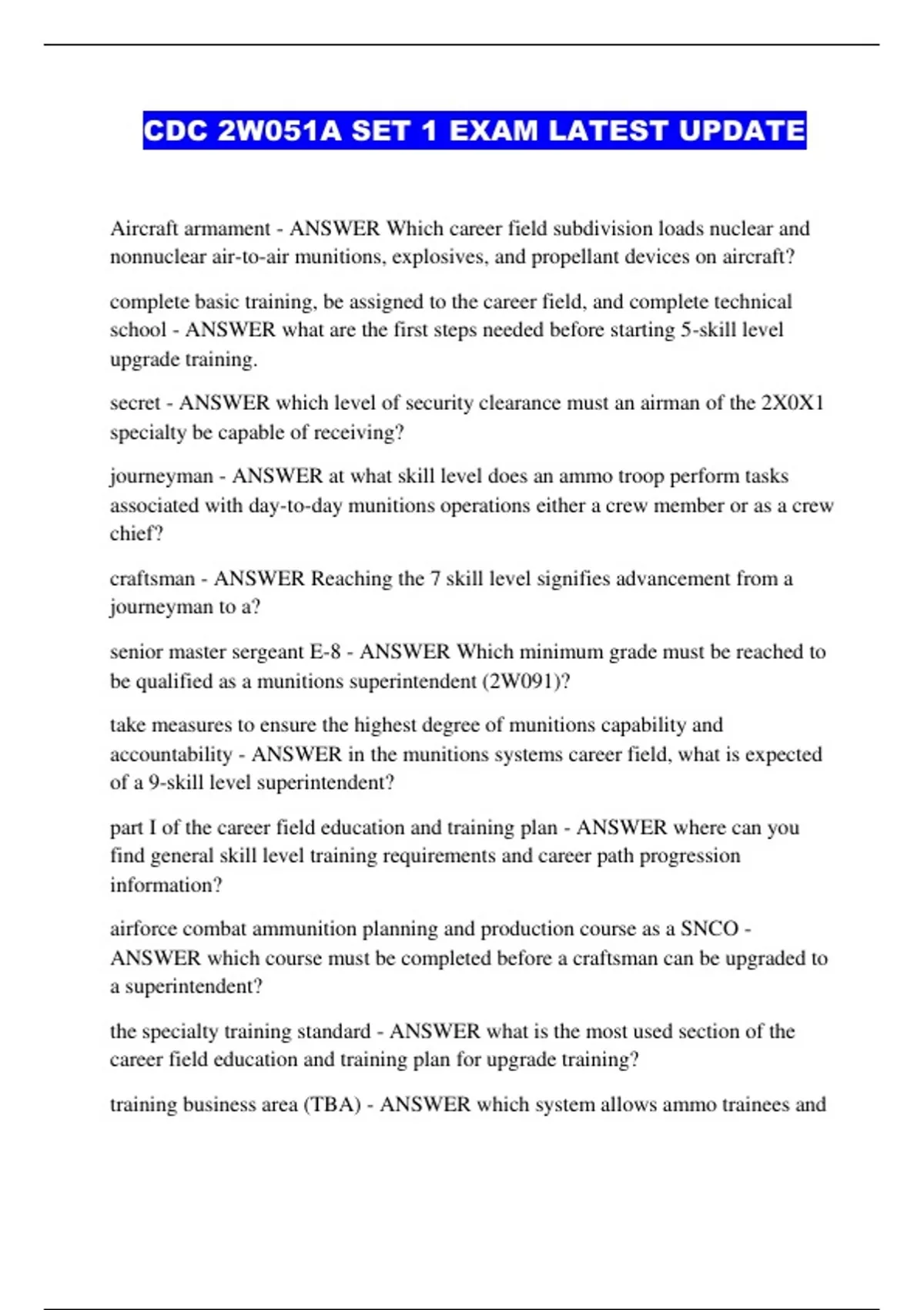 CDC 2W051A SET 1 EXAM LATEST UPDATE