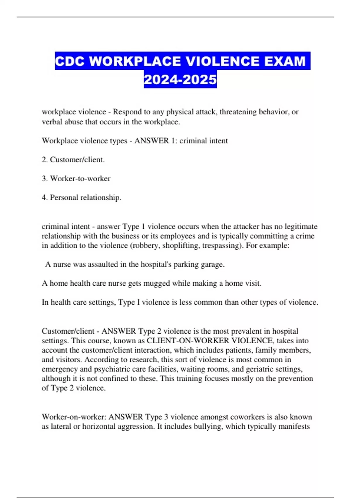 Customer/client - ANSWER Type 2 violence is the most prevalent in hospital
