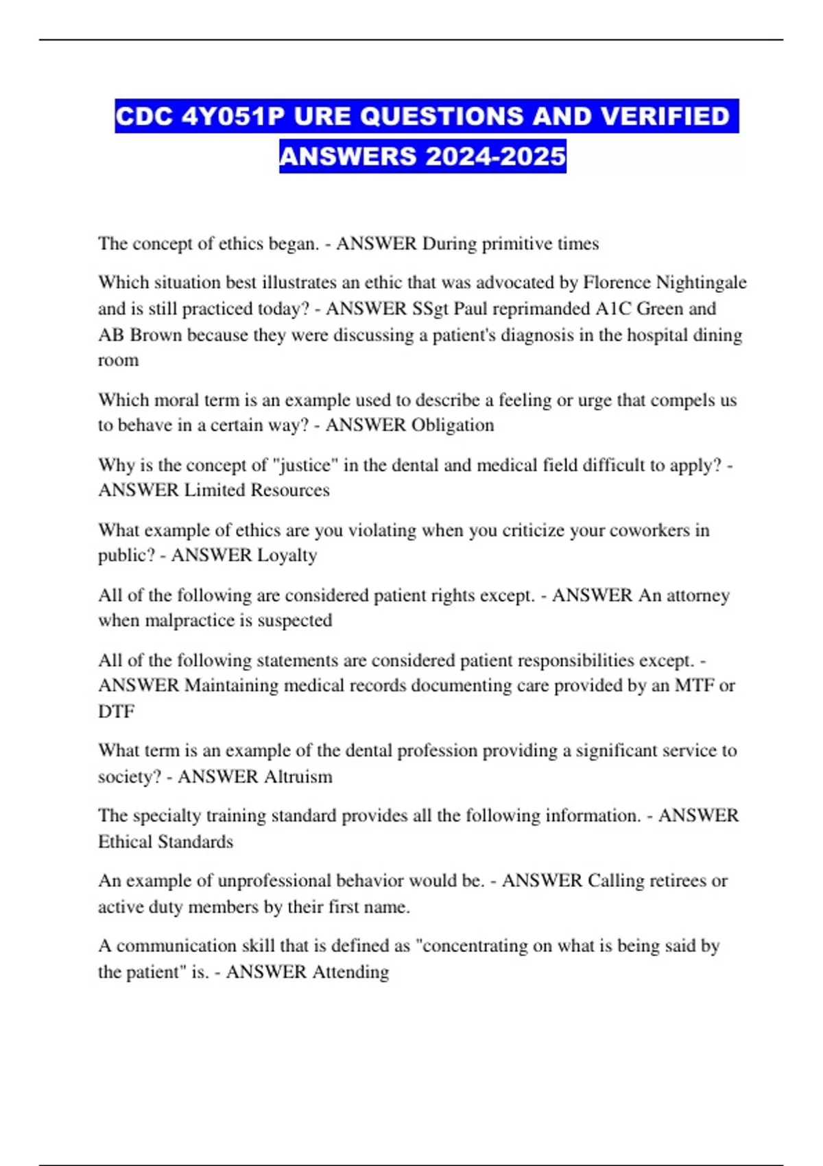 CDC 4Y051P URE QUESTIONS AND VERIFIED ANSWERS ...