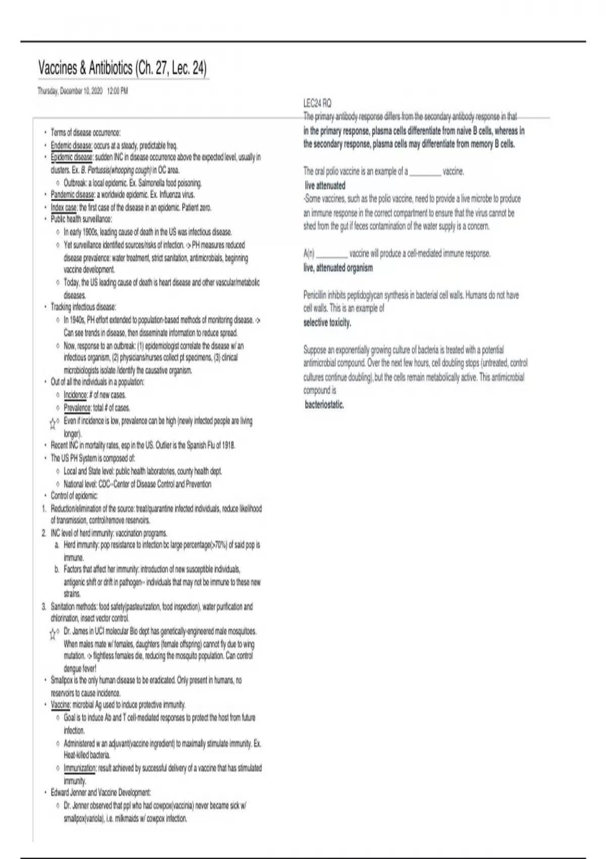 • Pandemic disease: a worldwide epidemic. Ex. Influenza virus. -Some vaccines, such as the polio vaccine, need to provide a live microbe to produce