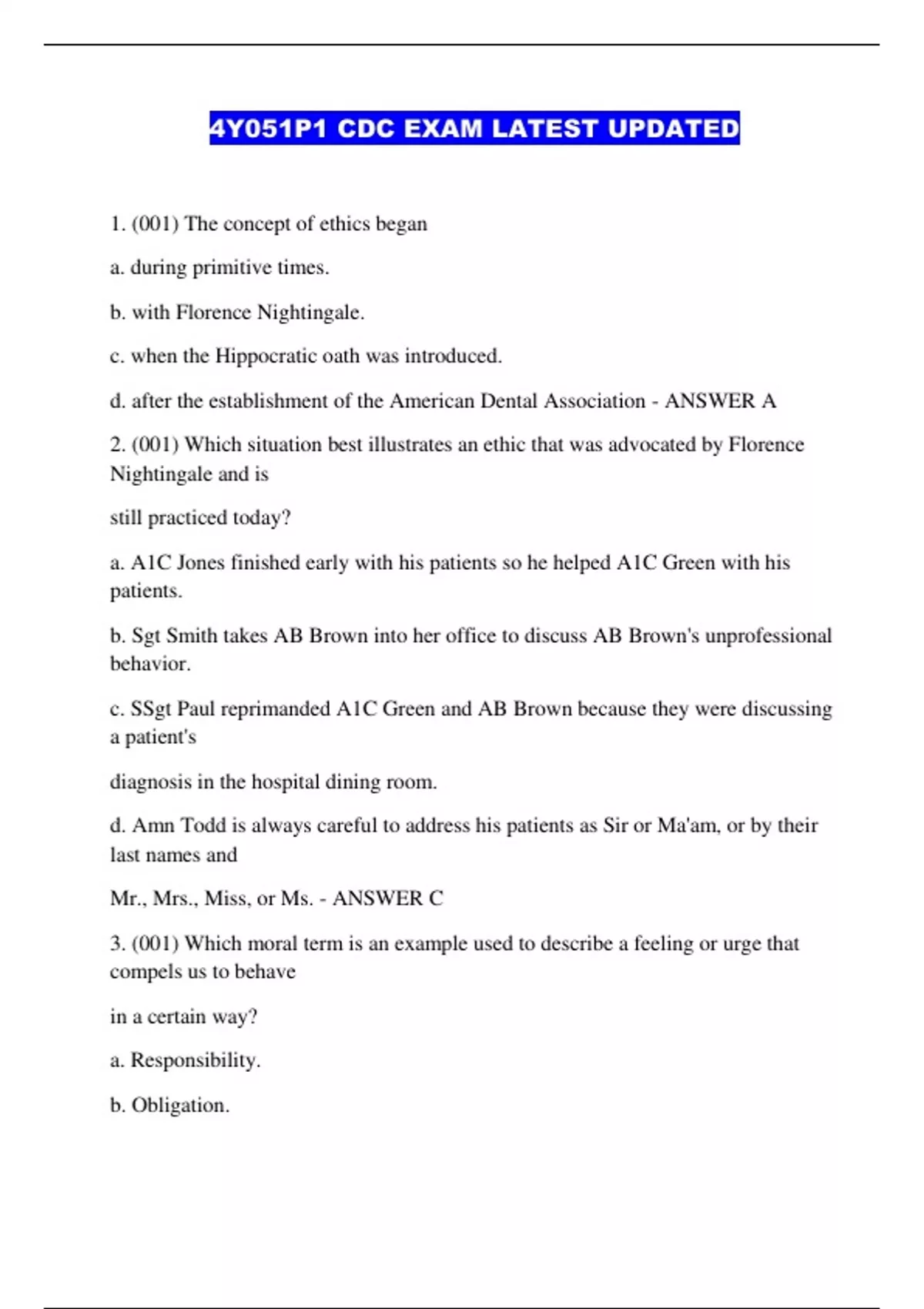 4Y051P1 CDC EXAM LATEST UPDATED