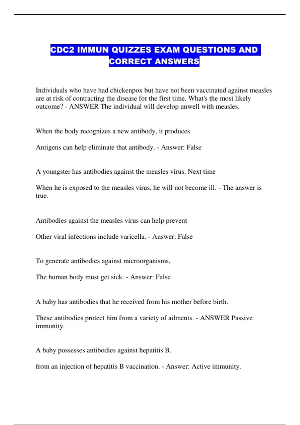 CDC2 IMMUN QUIZZES EXAM QUESTIONS AND