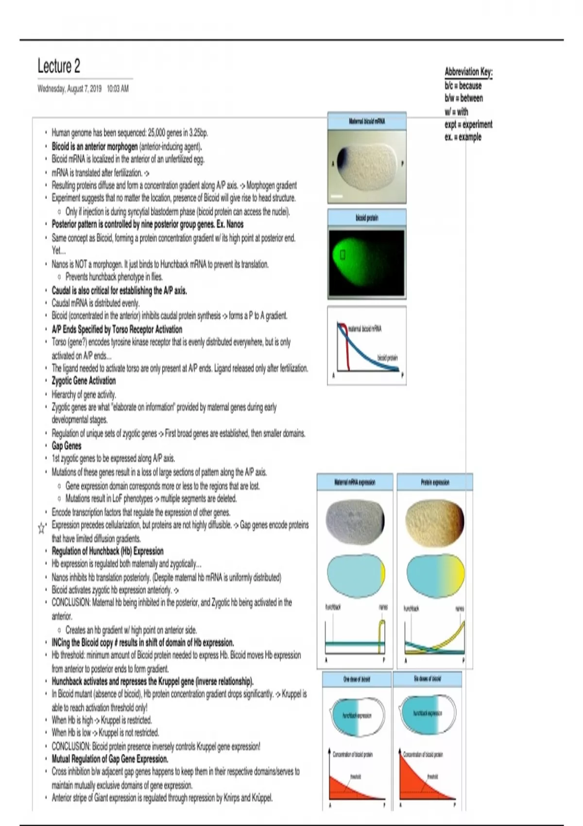 • 1st zygotic genes to be expressed along A/P axis.