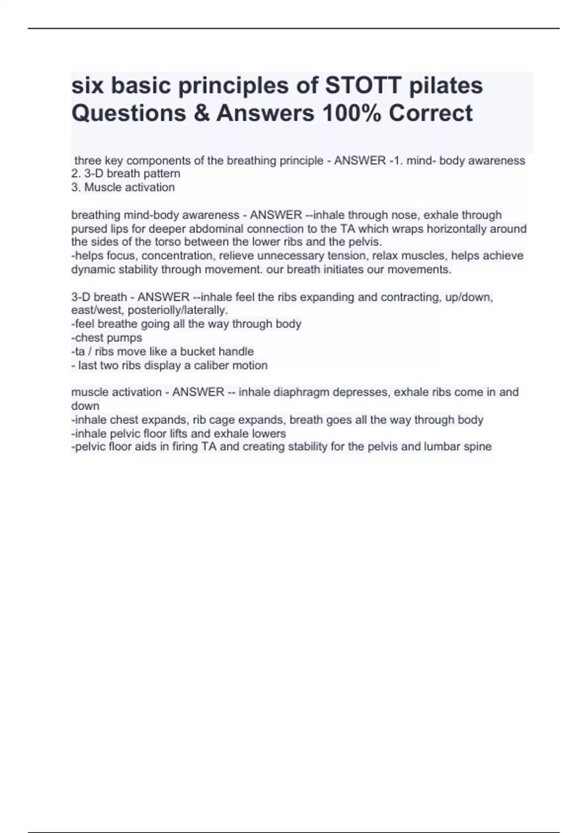 six basic principles of STOTT pilates Questions & Answers 100% Correct