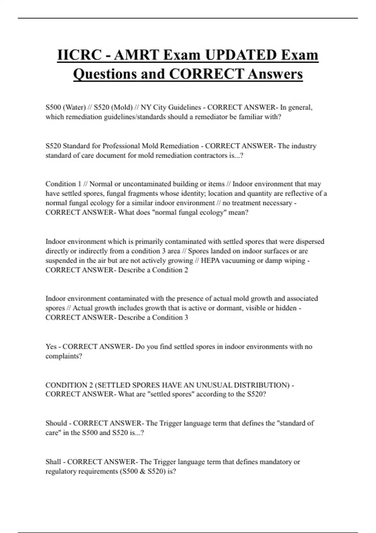 S520 Standard for Professional Mold Remediation - CORRECT ANSWER- The industry