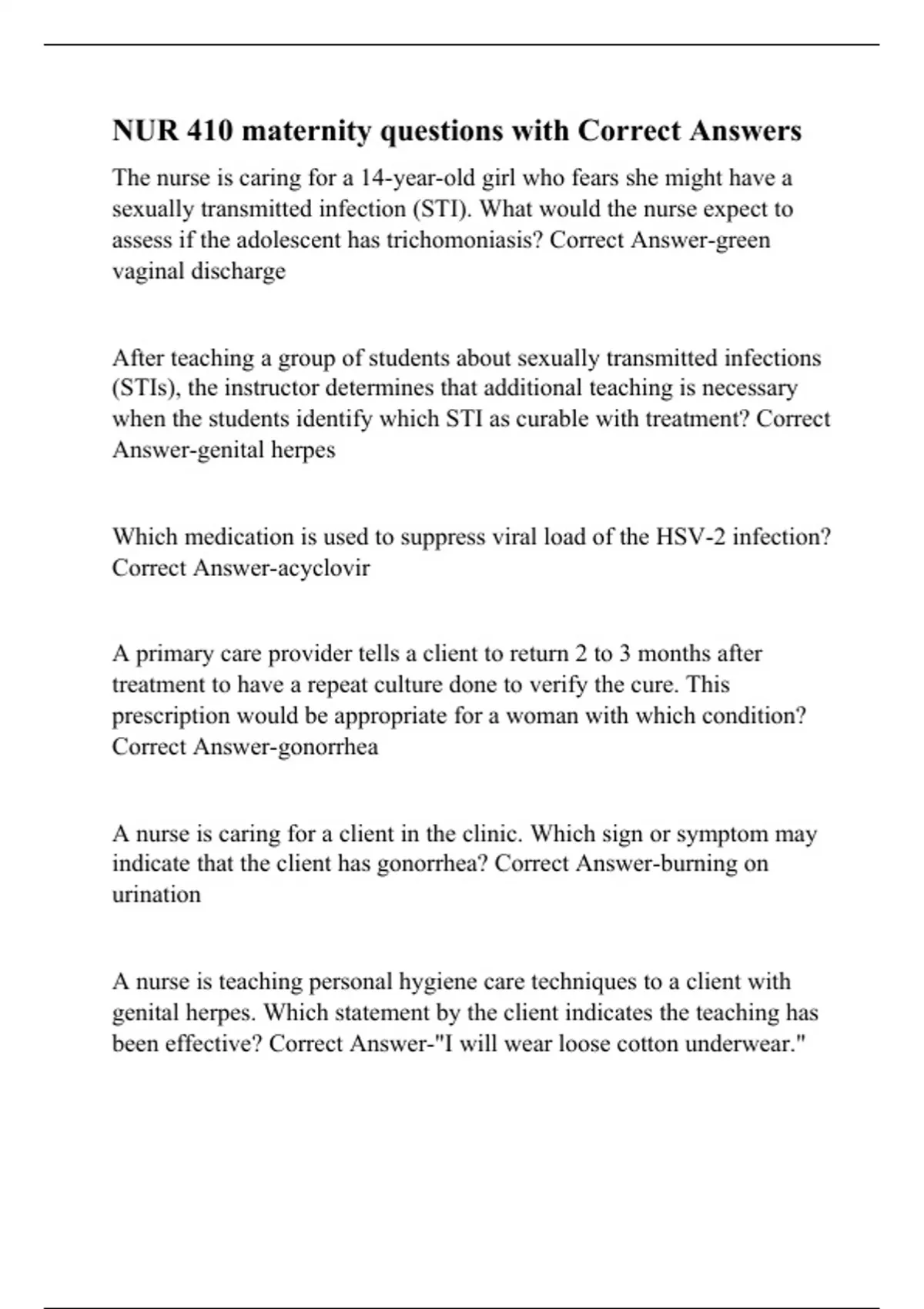 indicate that the client has gonorrhea? Correct Answer-burning on