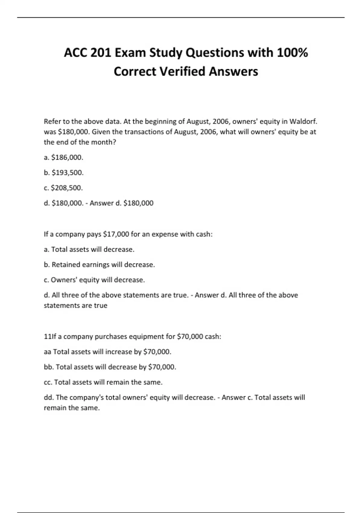 dd. The company's total owners' equity will decrease. - Answer c. Total assets will