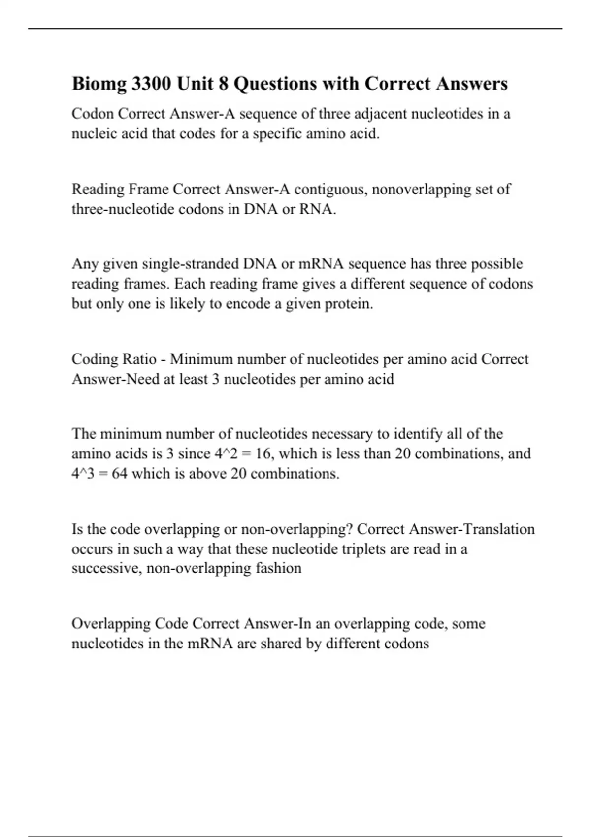 Open Reading Frame Correct Answer-A group of contiguous, non-