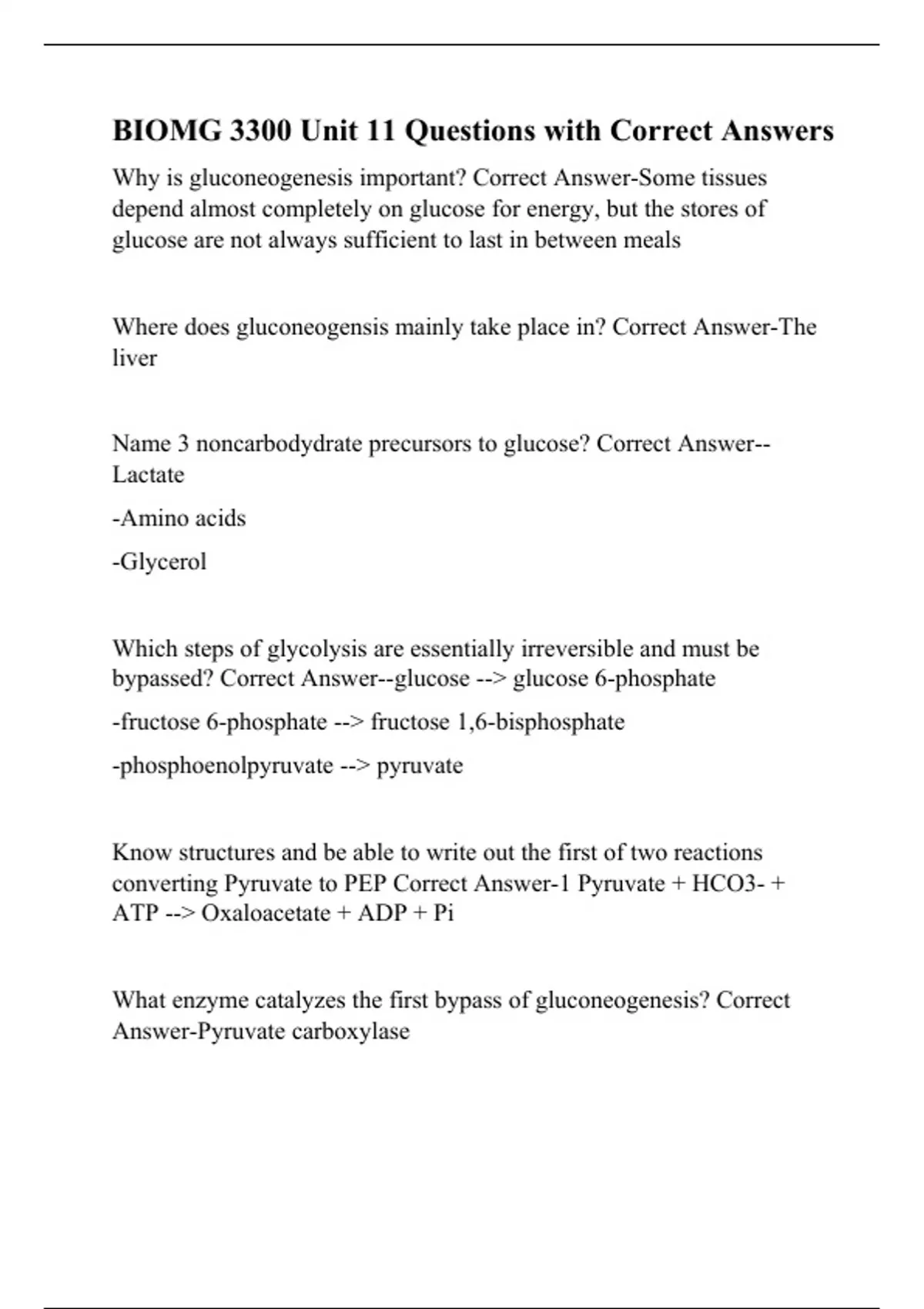 BIOMG 3300 Unit 11 Questions with Correct Answers.