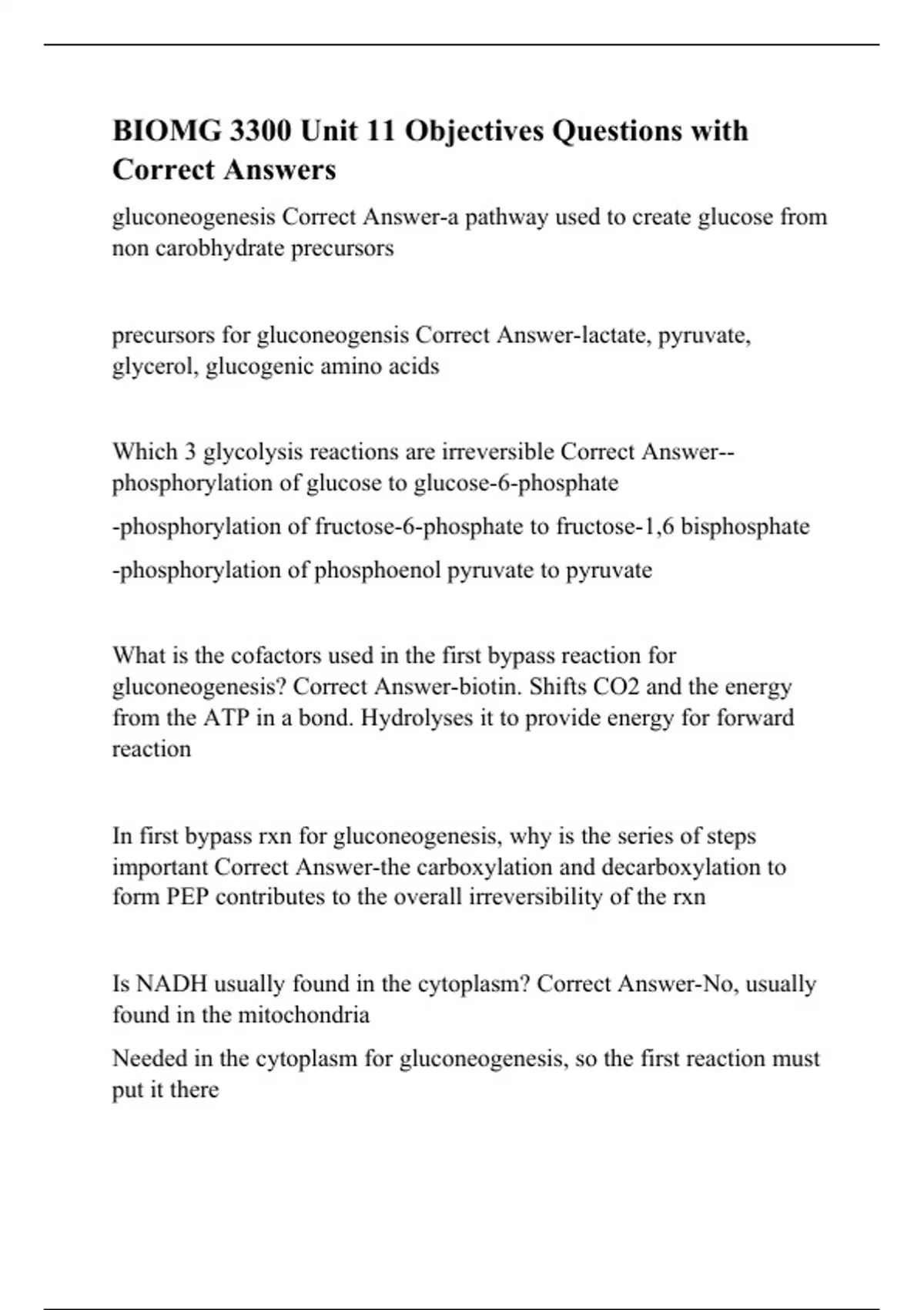 BIOMG 3300 Unit 11 Objectives Questions with Correct Answers.