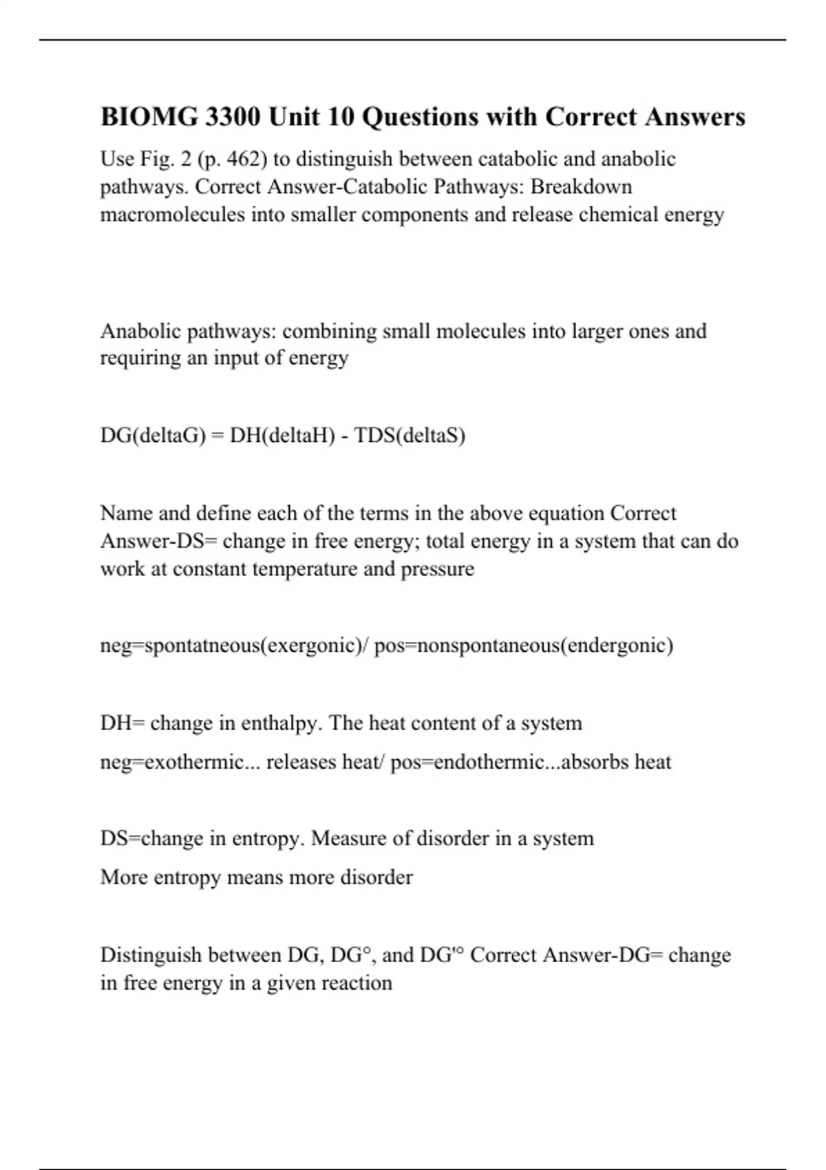 Distinguish between DG, DG°, and DG'° Correct Answer-DG= change