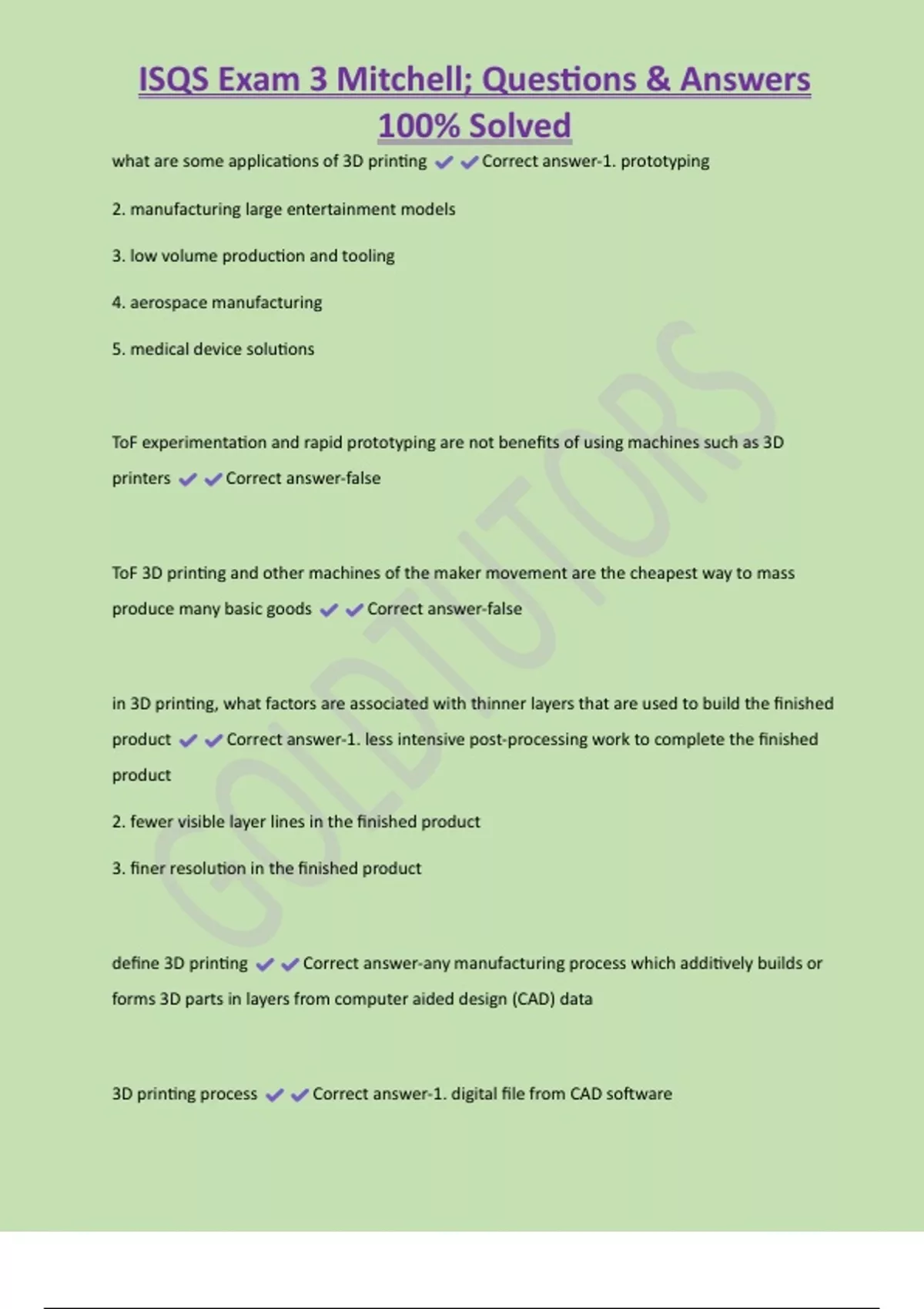 , ISQS Exam 3 Mitchell; Questions & Answers