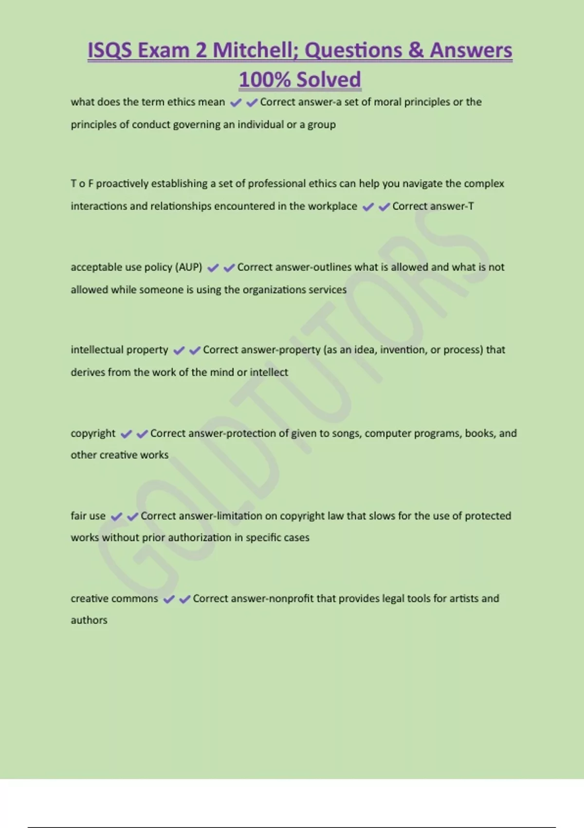 , ISQS Exam 2 Mitchell; Questions & Answers