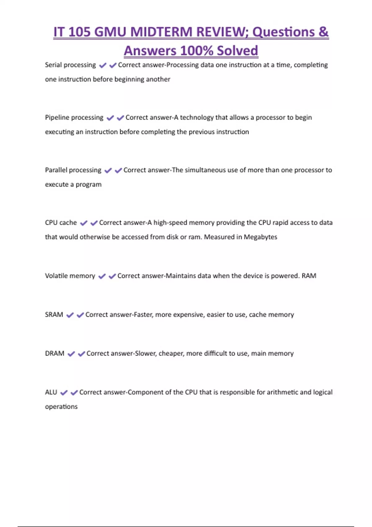 , IT 105 GMU MIDTERM REVIEW; Questions &