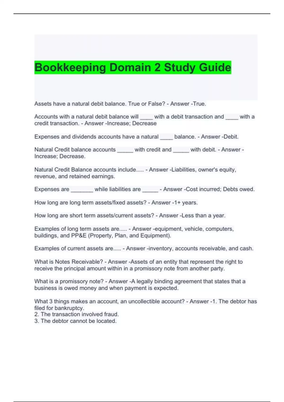 Bookkeeping Domain 2 Study Guide with correct Answers
