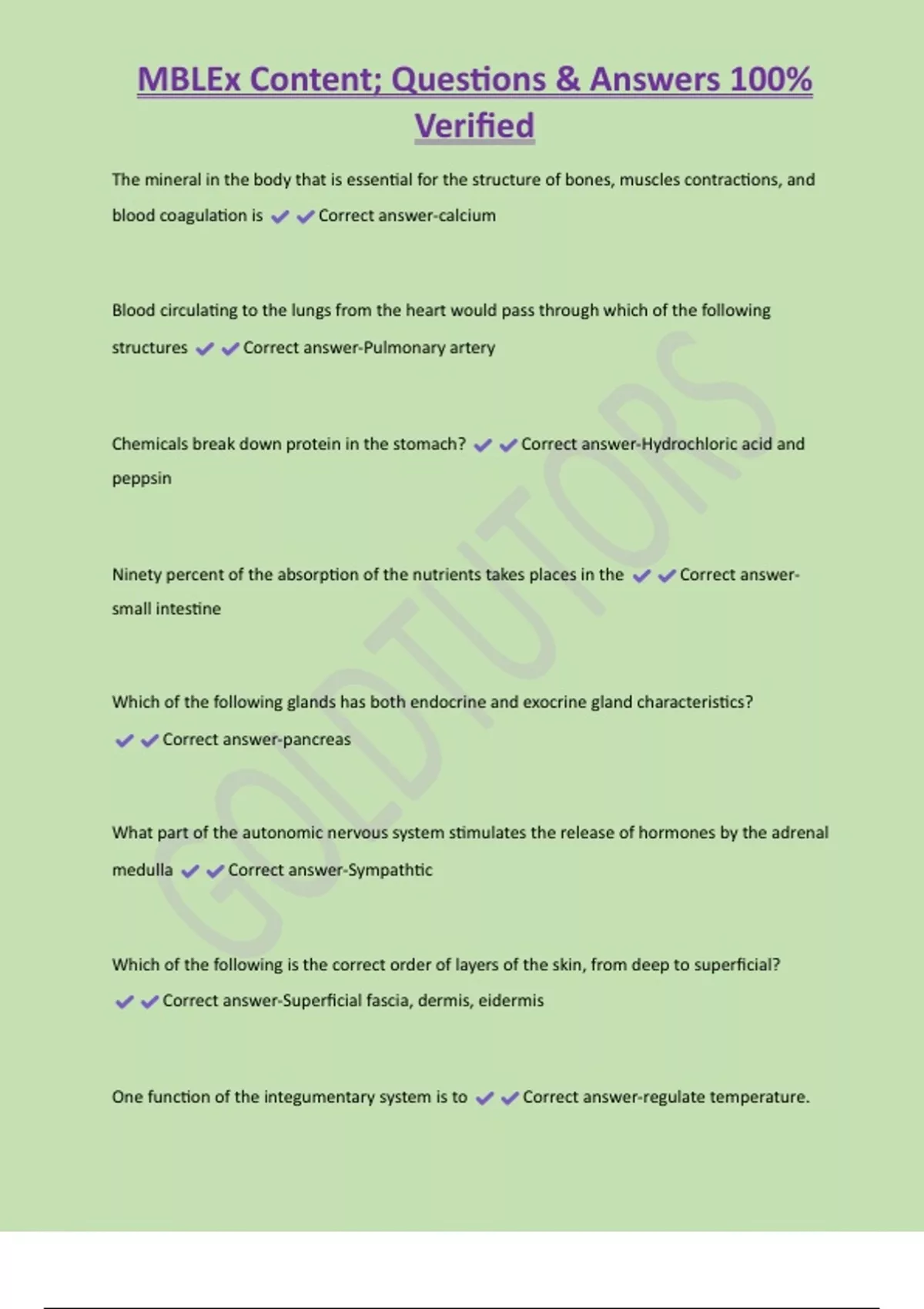 , MBLEx Content; Questions & Answers 100%