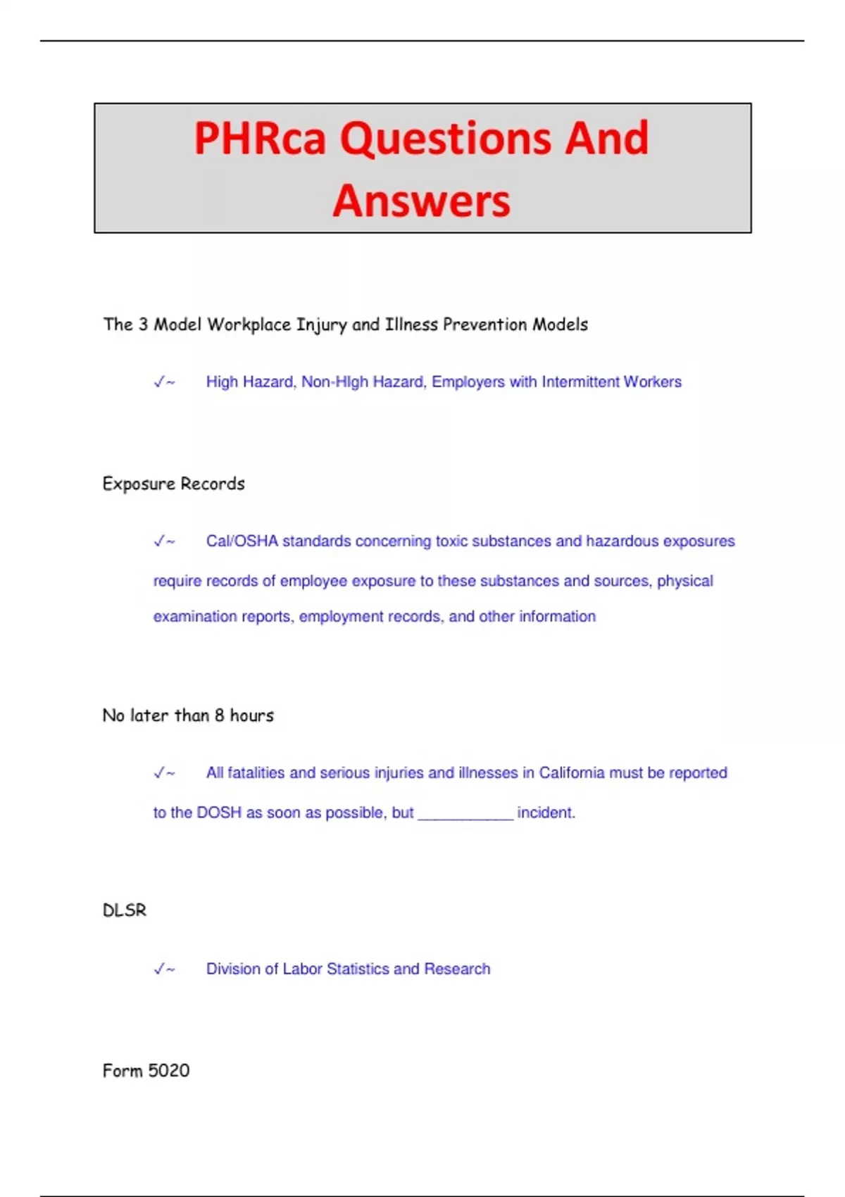 PHRca Questions And Answers