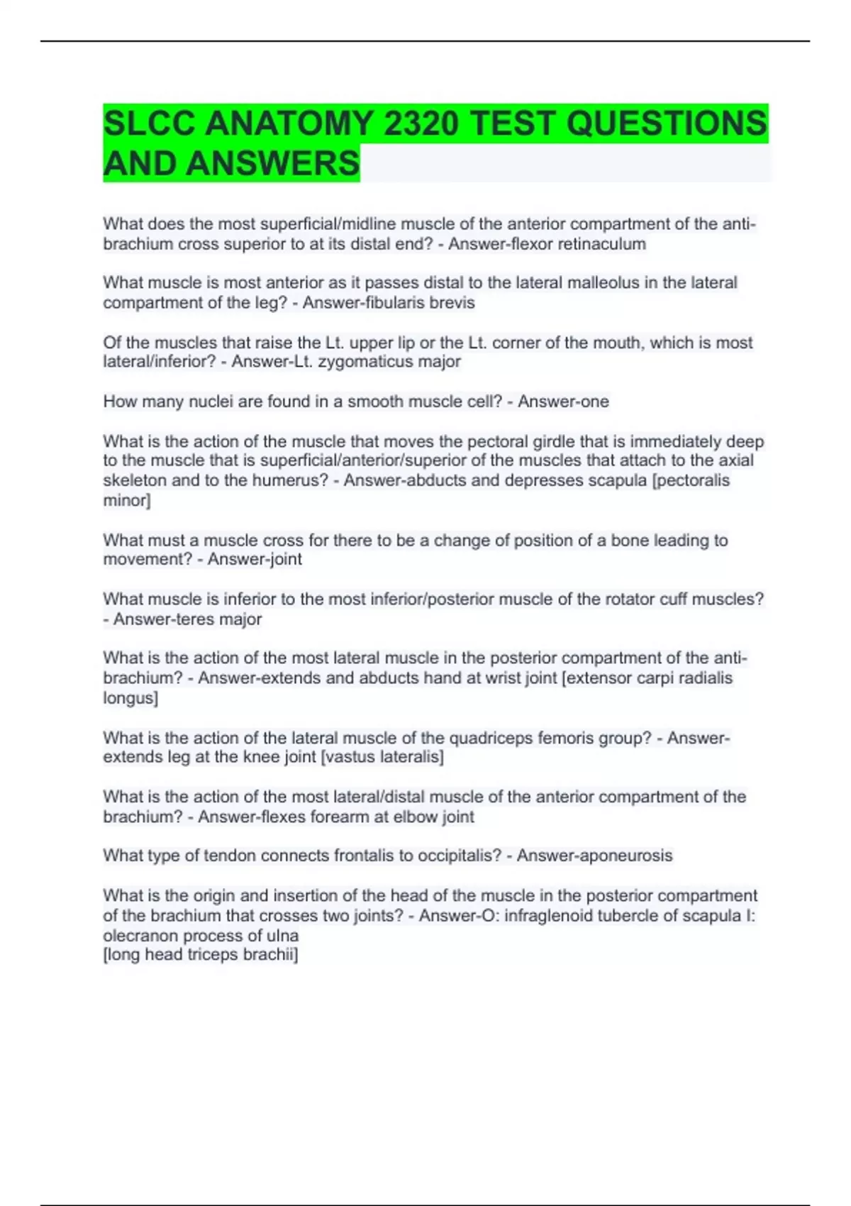 SLCC ANATOMY 2320 TEST QUESTIONS AND ANSWERS