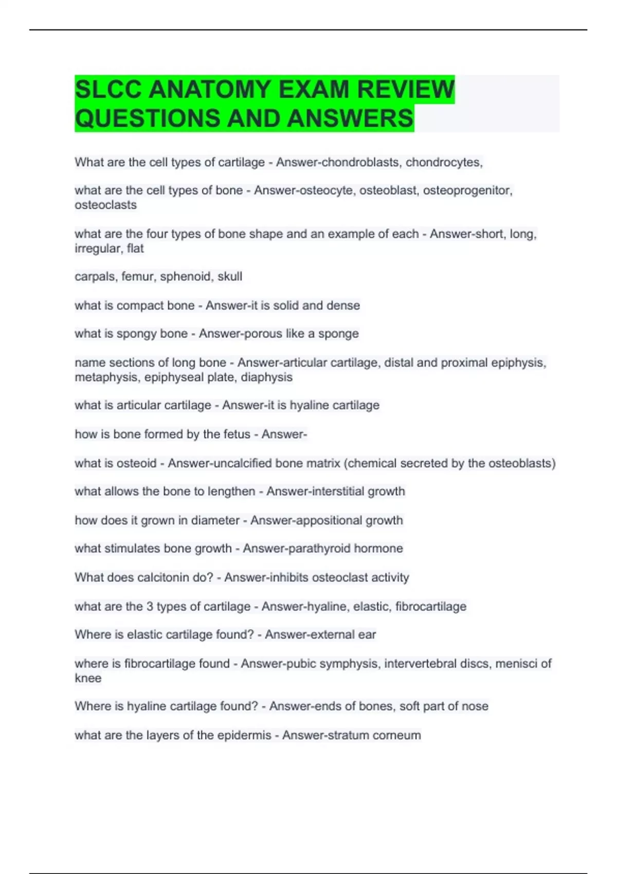 SLCC ANATOMY EXAM REVIEW QUESTIONS AND ANSWERS