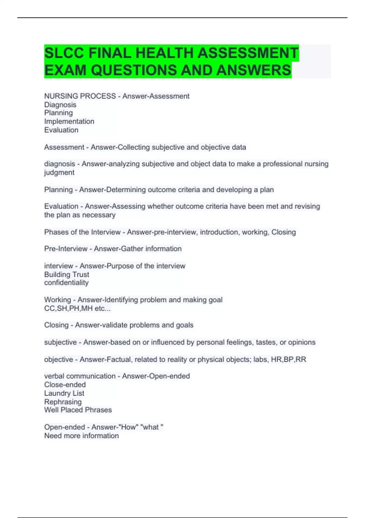 Initial Assessment - Answer-comprehensive nursing assessment resulting in baseline